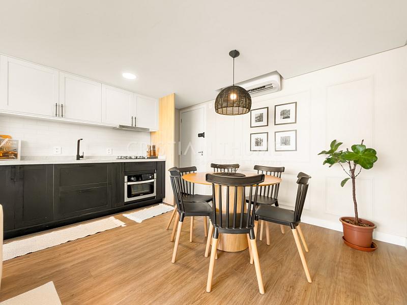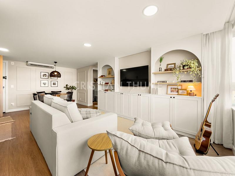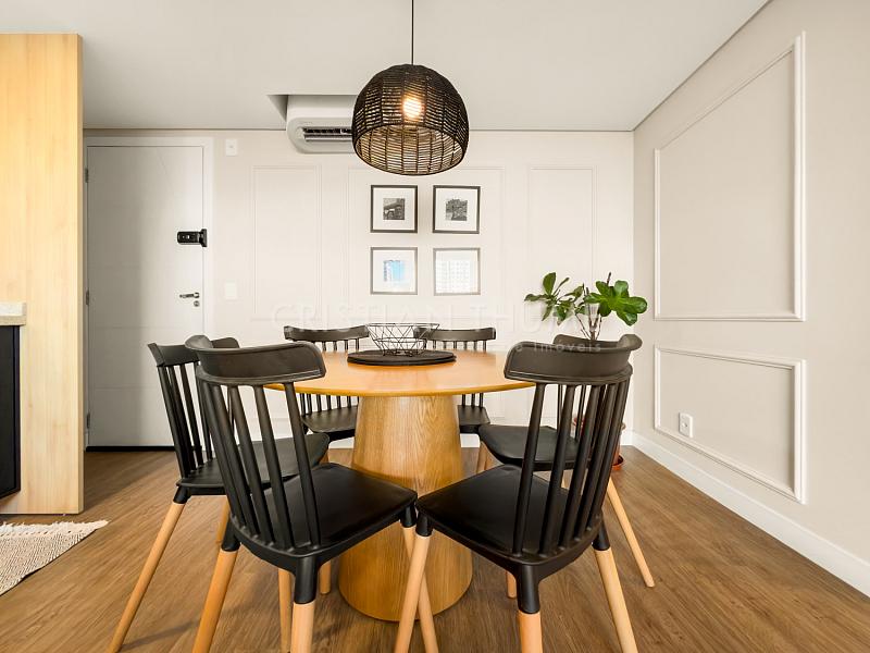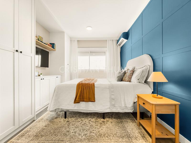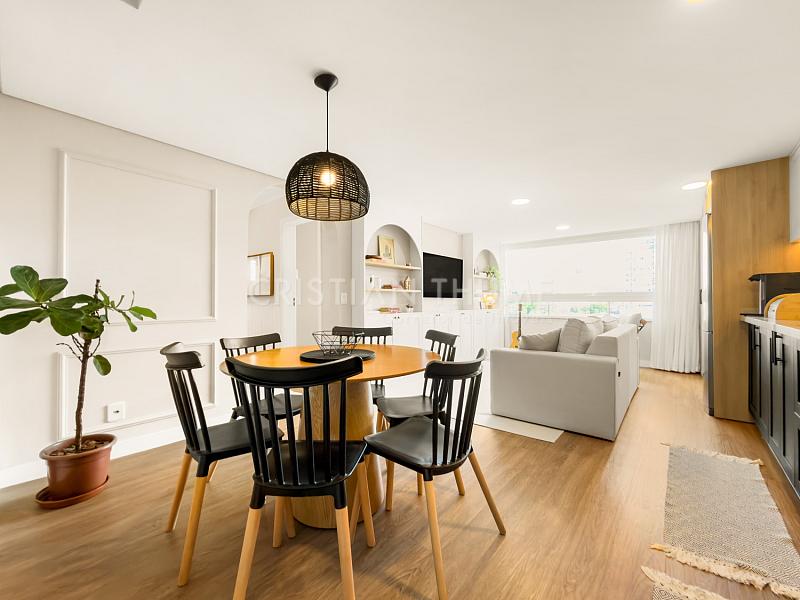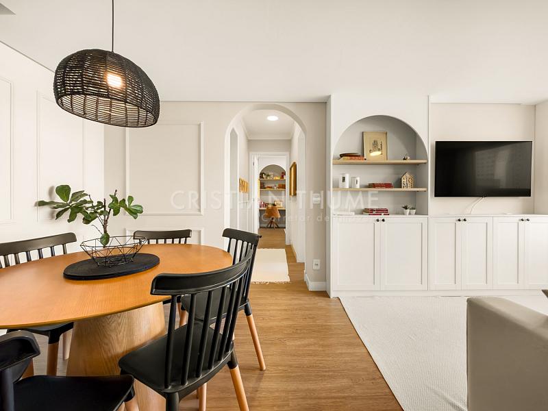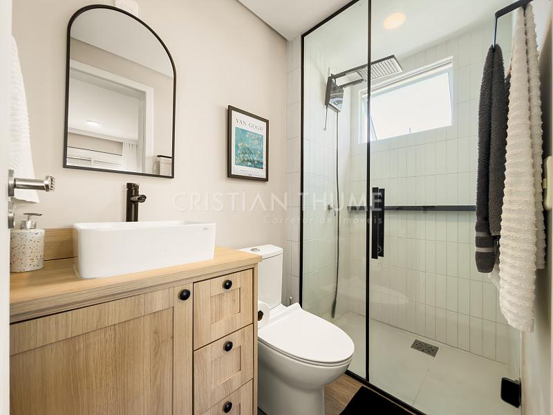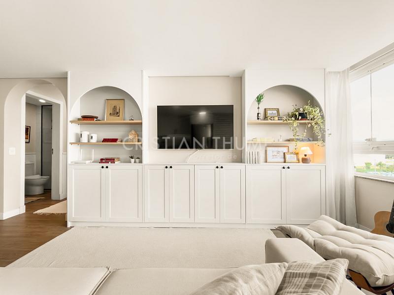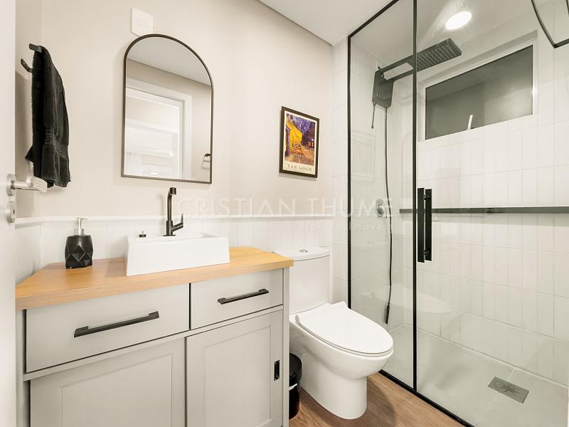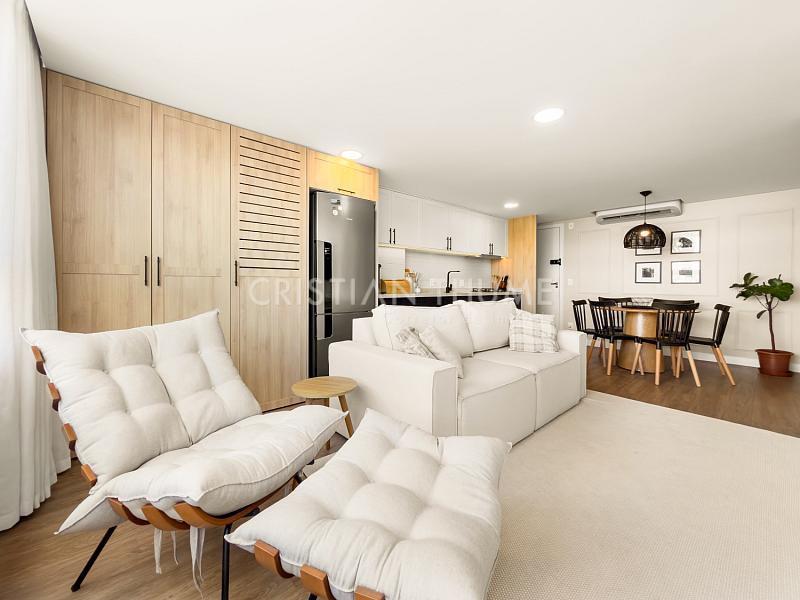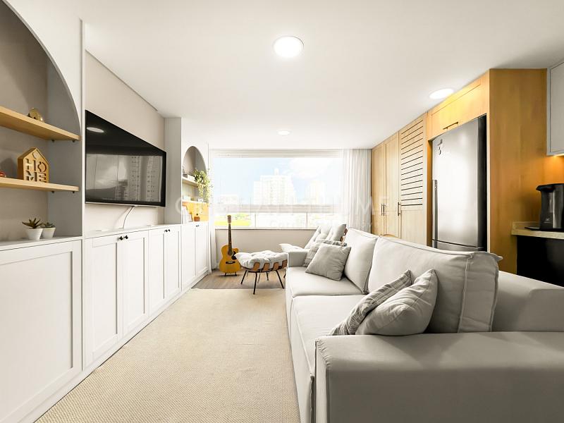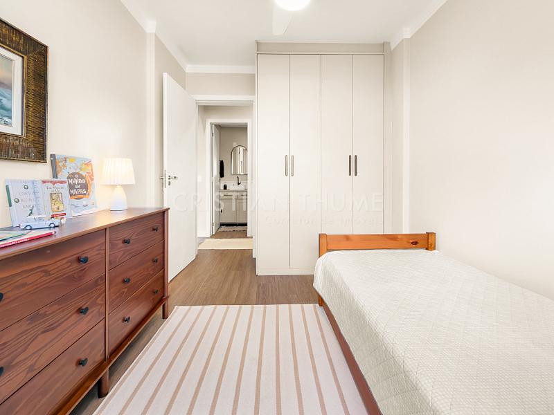 São 2 dormitórios, sendo 1 suíte, 2 banheiros e 1 vaga de garagem. O apartamento será vendido completamente mobiliado, decorado e equipado, exatamente para quem procura entrar e morar, sem precisar se preocupar com ajustes ou investimentos iniciais.